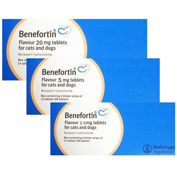 | Dosage | The veterinary medicinal product should be given orally once daily, with or without food. The duration of treatment is unlimited. The tablets are flavoured and are taken voluntarily by most dogs and cats. Dogs: Tablets should be administered orally at a minimum dose of 0.25 mg (range 0.25-0.5) benazepril hydrochloride/kg body weight once daily, according to the following table: Weight of dog (kg) Benamax/Benefortin Flavour 5mg Standard dose Double dose >5 – 10 0.5 tablet 1 tablet >10 – 20 1 tablet 2 tablets The dose may be doubled, still administered once daily, to a minimum dose of 0.5 mg/kg (range 0.5-1.0), if judged clinically necessary and advised by the veterinary surgeon. Cats: Tablets should be administered orally at a minimum dose of 0.5 mg (range 0.5-1.0) benazepril hydrochloride/kg body weight once daily according to the following table: Weight of cat (kg) Benamax / Benefortin Flavour 5 mg 2.5 – 5 0.5 tablet >5 – 10 1 tablet 4.10 Overdose (symptoms, emergency procedures, antidotes), if necessary Benazepril reduced erythrocyte counts in normal cats when dosed at 10 mg/kg body weight once daily for 12 months and in normal dogs when dosed at 150 mg/kg body weight once daily for 12 months, but this effect was not observed at the recommended dose during clinical trials in cats or dogs. Transient reversible hypotension may occur in cases of accidental overdose. Therapy should consist of intravenous infusion of warm isotonic saline. |