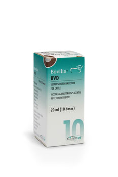 | Dosage | Amounts to be administered and administration route Before using the vaccine allow it to reach ambient temperature (15 °C – 25 °C). Shake well before use. Use sterile syringes and needles. Intramuscular injection. 2 ml per animal. All cattle can be vaccinated from an age of eight months onwards. Foetal protection can be expected if the primary immunisation has been finalised 4 weeks before start of the gestation. Animals which are vaccinated later than 4 weeks before gestation or during the early gestation will not be protected against foetal infection. Individual vaccination Basic immunisation Two vaccinations with an interval of 4 weeks. The second vaccination should be given not later than 4 weeks before the start of the gestation. Revaccination One vaccination 4 weeks before start of the next gestation. Herd vaccination Basic immunisation Two vaccinations with an interval of 4 weeks. For use in cattle from eight months of age, all animals should be vaccinated. Revaccination One vaccination 6 months after basic vaccination with next re-vaccinations at an interval no greater than 12 months. For revaccination, the vaccine may be used for reconstitution of Bovilis IBR Marker Live for use in cattle from 15 months of age (i.e. those that have previously been vaccinated separately with Bovilis BVD and Bovilis IBR Marker Live) and the following instructions should be used: Bovilis IBR Marker Live Bovilis BVD 5 doses + 10 ml 10 doses + 20 ml 25 doses + 50 ml 50 doses + 100 ml A single dose (2 ml) of Bovilis BVD mixed with Bovilis IBR Marker Live is given intramuscularly. Visual appearance after reconstitution of Bovilis IBR Marker Live in Bovilis BVD: As specified for Bovilis BVD alone. Overdose Reactions after a double dose are not different from those after the single dose. |