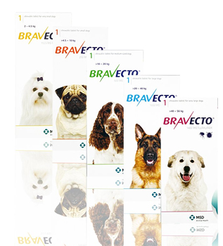 | Dosage | Amounts to be administered and administration route For oral use. Bravecto should be administered in accordance with the following table (corresponding to a dose of 25 – 56 mg fluralaner/kg body weight within one weight band): Body weight of dog (kg) Strength and number of tablets to be administered Bravecto 112.5 mg Bravecto 250 mg Bravecto 500 mg Bravecto 1000 mg Bravecto 1400 mg 2 - 4.5 1 > 4.5 - 10 1 > 10 - 20 1 > 20 - 40 1 > 40 - 56 1 The chewable tablets should not be broken or divided. For dogs above 56 kg body weight, use a combination of two tablets that most closely matches the bodyweight. Method of administration Administer Bravecto chewable tablets at or around the time of feeding. Bravecto is a chewable tablet and is well accepted by most dogs. If the tablet is not taken up voluntarily by the dog it can also be given with food or directly into the mouth. The dog should be observed during administration to confirm that the tablet is swallowed. Treatment schedule For optimal control of flea infestation, the veterinary medicinal product should be administered at intervals of 12 weeks. For optimal control of tick infestation, the timing of retreatment depends on the tick species. See also section "Indications for use". For the treatment of Demodex canis mite infestations, a single dose of the product should be administered. As demodicosis is a multi-factorial disease, it is advisable to also treat any underlying disease appropriately. For the treatment of sarcoptic mange infestations (Sarcoptes scabiei var. canis), a single dose of the product should be administered. The need for and frequency of re-treatment should be in accordance with the advice of the prescribing veterinarian. Overdose (symptoms, emergency procedures, antidotes), if necessary No adverse reactions were observed following oral administration to puppies aged 8 – 9 weeks and weighing 2.0 – 3.6 kg treated with overdoses of up to 5 times the maximum recommended dose (56 mg, 168 mg and 280 mg fluralaner/kg body weight) on three occasions at shorter intervals than recommended (8-week intervals). There were no findings on reproductive performance and no findings of concern on offspring viability when fluralaner was administered orally to Beagle dogs at overdoses of up to 3 times the maximum recommended dose (up to 168 mg/kg body weight of fluralaner). The veterinary medicinal product was well tolerated in Collies with a deficient multidrug-resistance-protein 1 (MDR1 -/-) following single oral administration at 3 times the recommended dose (168 mg/kg body weight). No treatment-related clinical signs were observed. |