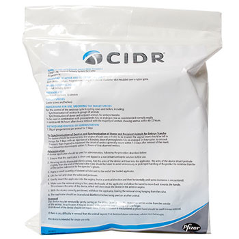 | Dosage | 1.38g of progesterone (1 device) per animal for 7 - 9 days (depending on indication). For synchronisation of oestrus and synchronisation of donor and recipient animals for embryo transfer: One device should be inserted into the vagina of each cow or heifer to be treated. The vaginal insert should be left in position for 7 days with an injection of a luteolytic dose of prostaglandin F2α or analogue administered 24 hours prior to removal. In animals that respond to treatment the onset of oestrus generally occurs within 1-3 days after removal of the insert. Cows should be inseminated within 12 hours of first observed oestrus. For the induction and synchronisation of oestrus for Fixed Time Artificial Insemination (FTAI): The following FTAI protocols have been commonly reported in the scientific literature and should be used: In cycling cows and heifers -Insert one CIDR 1.38g into vagina for 7 days. -Inject a luteolytic dose of PGF2α or analogue 24 hours prior to device removal. -FTAI 56 hours after removal of the device. In cycling and non-cycling cows and heifers -Insert one CIDR 1.38g into vagina for 7- 8 days. -Inject a dose of GnRH or analogue at CIDR 1.38g insertion. -Inject a luteolytic dose of PGF2α or analogue 24 hours prior to device removal. -FTAI 56 hours after removal of the device, or -Inject GnRH or analogue 36 hours after CIDR 1.38g removal and FTAI 16 to 20 hours later. In non-cycling cows The following FTAI protocol should be used: -Insert one CIDR 1.38g into vagina for 9 days. -Inject a luteolytic dose of PGF2α or analogue 24 hours prior to device removal. -Inject eCG at CIDR 1.38g removal. -FTAI 56 hours after removal of the device, or inseminate within 12 hours following first observed oestrus behaviour. Administration A device applicator should be used for administration, following the procedure described below: 1Ensure that the applicator is clean and dipped in a non-irritant antiseptic solution before use. 2Wearing sterile disposable plastic gloves, fold the arms of the device and load into the applicator. The arms of the device should protrude slightly from the end of the applicator. Care should be taken to avoid unnecessary or prolonged handling of the product to minimise transfer of the active substance to the operator's gloves. 3Apply a small quantity of obstetrical lubricant to the end of the loaded applicator. 4Lift the tail and clean the vulva and perineum. 5Gently insert the applicator into the vagina, first in a vertical direction and then horizontally until some resistance is encountered. 6Make sure the removal string is free, press the handle of the applicator and allow the barrel to move back towards the handle. This releases the arms of the device, which will then retain the device in the anterior vagina. 7With the device correctly positioned, withdraw the applicator, leaving the removal string hanging from the vulva. 8The applicator should be cleaned and disinfected before being used on another animal. Removal The device may be removed by gently pulling on the string. On occasions the string may not be visible from the outside of the animal, in such cases it may be located in the posterior vagina using a gloved finger. Withdrawal of the device should not require force. If any resistance is encountered a gloved hand should be used to ease removal. If there is any difficulty in removal from the animal beyond that itemised above veterinary advice must be sought. The device is intended for single use only. |