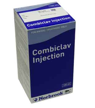 | Dosage | Amount(s) to be administered and administration route For intramuscular injection at a dosage rate of 8.75 mg/kg bodyweight (1 ml per 20 kg bodyweight) daily for 3-5 days. Shake the vial well before use. After injection, massage the injection site. Use a completely dry sterile needle and syringe. Swab the septum before removing each dose. For Combined Therapy the following minimum treatment regime should be followed: Combiclav Injection Combiclav LC Intramammary 8.75 mg/kg bodyweight (7.0 mg amoxicillin, 1.75 mg clavulanic acid) i.e. 1 ml/20 kg bodyweight. One syringe gently infused into the teat of the infected quarter 24 hours Description: arrowdown 12 hours Description: arrowdown 8.75 mg/kg bodyweight (7.0 mg amoxicillin, 1.75 mg clavulanic acid) i.e. 1 ml/20 kg bodyweight. One syringe gently infused into the teat of the infected quarter 24 hours Description: arrowdown 12 hours Description: arrowdown 8.75 mg/kg bodyweight (7.0 mg amoxicillin, 1.75 mg clavulanic acid) i.e. 1 ml/20 kg bodyweight. One syringe gently infused into the teat of the infected quarter Where necessary Combiclav Injection may be administered for an additional two days for a total of 5 daily injections. To ensure the correct dosage, bodyweight should be determined as accurately as possible to avoid underdosing. Overdose (symptoms, emergency procedures, antidotes), if necessary Potentiated penicillin is of a low order of toxicity and is well tolerated by the parenteral route. Apart from occasional injection site reactions, which may occur at the recommended dose, no other adverse effects are to be expected from an accidental overdose. |