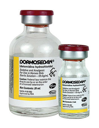 | Dosage | 4.9 Amounts to be administered and administration route The following procedures are recommended. Use two sterile needles, one to fill the syringe from the bottle and one to inject the patient. Once the required dose has been withdrawn from the vial, the syringe should be removed from the needle. A separate sterile needle should be inserted into the injection site and the syringe connected to it. The needles should be discarded. The product alone To be administered intramuscularly or by slow intravenous injection at a concentration of 10-80 µg detomidine / kg bodyweight depending on the degree of sedation required. Detomidine/butorphanol combination Dosage: 0.1 ml product/100 kg (10 µg/kg detomidine hydrochloride) intravenously, followed within 5 minutes by a dose rate in the region of 25µg/kg butorphanol, intravenously. Clinical experience has shown that 5mg detomidine and 10mg butorphanol affords effective, safe sedation in horses above 200 kg bodyweight. Detomidine/ketamine combination (short duration anaesthesia) Ketamine must not be used as the sole anaesthetic agent in horses. It is always necessary to administer detomidine prior to ketamine and to allow sufficient time (5 minutes) for sedation to develop. The two agents must therefore never be administered simultaneously in the same syringe. It is important that, to obtain satisfactory surgical anaesthesia the following procedure is followed: Administer the product at a dose rate of 20 µg/kg by slow intravenous injection. Allow 5 minutes for the horse to become deeply sedated then administer ketamine at a dose rate of 2.2 mg/kg as an intravenous bolus. Onset of anaesthesia is gradual, the horse taking approximately 1 minute to become recumbent. In large fit horses recumbency may take up to 3 minutes. Anaesthesia will continue to deepen for a further 1-2 minutes and during this time the horse should be left quietly. Horses regain sternal recumbency approximately 20 minutes post ketamine administration. The duration of surgical anaesthesia is approximately 10-15 minutes and if for any reason it is necessary to prolong anaesthesia, thiopentone sodium can be administered intravenously in boluses of 1 mg/kg as required. Total doses of 5 mg/kg increments have been given. Total doses greater than this may reduce the quality of recovery. Thiopentone can also be administered (as above regime) if sufficient depth of anaesthesia is not achieved. The horse should be allowed to stand in its own time. The horse may be ataxic if it stands prematurely and therefore it should be encouraged to remain recumbent. To facilitate handling and the administration of the induction agents, some horses have received acepromazine by intramuscular injection at a dose rate of 0.03 mg/kg at least 45 minutes before induction of anaesthesia. Excitable horses are sometimes poor subjects for anaesthesia. It is a prime requisite that the horse should be quietly and carefully handled during the administration of the anaesthetic agents so as to ensure the minimum amount of upset during the induction period. If the horse fails to become sedated following the injection of the product, then ketamine should not be injected and the anaesthesia procedure should be abandoned. 4.10 Overdose (symptoms, emergency procedures, antidotes), if necessary Overdose may cause cardiac arrhythmia, hypotension, delayed recovery, and deep depression of the central nervous system and the respiratory system’.. If recovery is delayed, it should be ensured that the animal can recover in a quiet and warm place. An oxygen supplement may be indicated in circulatory and respiratory depression. In cases of overdose, or should the effects become life-threatening, an alpha-2 antagonist (atipamezole) is recommended (5-10 times the dose of detomidine in µg/kg). AV blocks may be prevented by IV administration of atropine at 0.005 - 0.02 mg/kg. Atropine raises the heart rate but may cause arrhythmias and should be used with caution. |