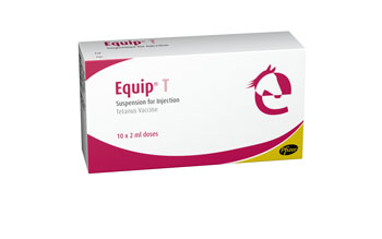 Equip T for the vaccination of healthy horses against tetanus. An opaque, aqueous vaccine for intramuscular injection. Each 2ml of Equip T vaccine contains concentrated immunopurified tetanus toxoid (100 Lf units) adsorbed onto aluminium phosphate.