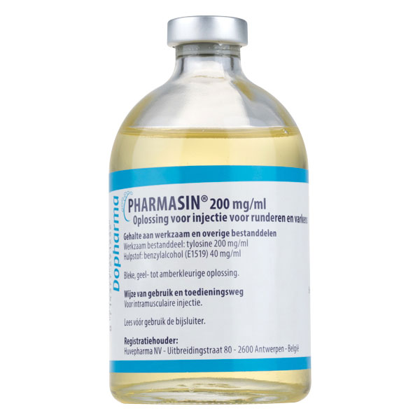 | Dosage | For intramuscular injection: Cattle: 5-10 mg tylosin/kg bodyweight per day for 3 days (2.5 to 5 ml solution for injection per 100 kg bodyweight). Maximum injection volume per injection site should not exceed 15 ml. Pigs: 5-10 mg tylosin/kg bodyweight per day for 3 days (2.5 to 5 ml solution for injection per 100 kg bodyweight). In pigs do not administer more than 5ml per injection site. To ensure the correct dosage, bodyweight should be determined as accurately as possible to avoid under dosing. The closures should not be broached more than 15 times. In order to prevent excessive broaching of the stopper, a suitable multiple dosing device should be used. Overdose (symptoms, emergency procedures, antidotes), if necessary Pigs and calves: Intramuscular injection of 30 mg/kg bodyweight per day (three times maximum recommended dose) for five days produced no adverse effects. |