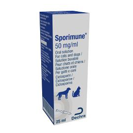 | Dosage | Amounts to be administered and administration route For oral use. Before starting treatment, an evaluation of all alternative treatment options should be made. To ensure administration of the correct dosage body weight should be determined as accurately as possible. At first use: replace the original screw cap of the bottle with the separately delivered screw cap. Fill the correct dosing syringe by pulling the plunger until it reaches the graduation corresponding to the correct body weight of the animal. After administration of the veterinary medicinal product close bottle tightly with cap, wash the measuring syringe with water and let it dry. Dosage and method of administration Dogs: The mean recommended dose of ciclosporin is 5 mg per kg body weight (0.25 ml oral solution per 2.5 kg body weight). The veterinary medicinal product should be given at least 2 hours before or after feeding. The product should be administered directly into the dog’s mouth on the back of the tongue using the graduated dosing syringe supplied (1 ml oral solution contains 50 mg ciclosporin) and delivering the entire dose. Cats: The recommended dose of ciclosporin is 7 mg/kg body weight (0.14 ml of oral solution per kg) and should initially be administered daily. The frequency of administration should subsequently be reduced depending on the response. The veterinary medicinal product can be given either mixed with food or directly into the mouth. If given with food, the solution should be mixed with half the normal amount of food consumed using the graduated dosing syringe supplied. (1 ml oral solution contains 50 mg ciclosporin), preferably after a sufficient period of fasting to ensure complete consumption by the cat. When the medicated feed is fully consumed the rest of the food may be given. Should the cat not accept the product mixed with food, it should be given by inserting the syringe directly into the cat's mouth and delivering the entire dose. If the cat only partially eats the product mixed with food, administration of the product directly into the mouth using the graduated dosing syringe must only be continued the next day. Duration and frequency of administration The product will initially be given daily until a satisfactory clinical improvement is seen (assessed by intensity of pruritis and lesion severity - excoriations, miliary dermatitis, eosinophilic plaques and/or self-induced alopecia). This will generally be the case within 4-8 weeks. If no response is obtained within the first 8 weeks, the treatment should be stopped. Once the clinical signs of atopic/allergic dermatitis are satisfactorily controlled, the preparation can then be given every other day as a maintenance dose. The veterinarian should perform a clinical assessment at regular intervals and adjust the frequency of administration to the clinical response obtained. In some cases where the clinical signs are controlled with every-other-day dosing, the veterinarian can decide to give the veterinary medicinal product every 3-4 days. The lowest effective frequency of dosing should be used to maintain the remission of clinical signs. Adjunct treatment (e.g. medicated shampoos, fatty acids) may be considered before reducing the dosing interval. Patients should be regularly re-evaluated and alternative treatment options reviewed. Treatment may be stopped when the clinical signs are controlled. Upon recurrence of clinical signs, treatment should be resumed at daily dosing, and in certain cases repeated treatment courses may be required. Overdose There is no specific antidote and in case of signs of overdose the animal should be treated symptomatically. Dogs:No undesirable effects beyond those that were seen under recommended treatment have been observed in the dog with a single oral dose of up to 5 times of what is recommended. In addition to what was seen under recommended dosage, the following adverse reactions were seen in case of overdose for 3 months or more at 4 times the mean recommended dosage: hyperkeratotic areas especially on the pinnae, callous-like lesions of the foot pads, weight loss or reduced weight gain, hypertrichosis, increased erythrocyte sedimentation rate, decreased eosinophil values. Frequency and severity of these signs are dose dependent. The signs are reversible within 2 months following cessation of treatment. Cats: The following adverse events were seen in the case of repeated administration of the active substance for 56 days at 24 mg/kg (more than 3x the recommended dose) or for 6 months at up to 40 mg/kg (more than 5x the recommended dose): loose/soft faeces, vomiting, mild to moderate increases in absolute lymphocyte counts, fibrinogen, activated partial thromboplastin time (APTT), slight increases in blood glucose and reversible gingival hypertrophy. The frequency and severity of these signs were generally dose and time dependent. At 3x the recommended dose administered daily for nearly 6 months, changes in ECG (conduction disturbances) may occur in very rare cases. They are transient and not associated with clinical signs. Anorexia, recumbency, loss of skin elasticity, few or absent faeces, thin and closed eyelids may be observed in sporadic cases at 5x the recommended dose. |