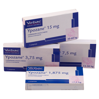 | Dosage | Amounts to be administered and administration route For oral use. Administer 0.25 – 0.5 mg osaterone acetate per kilogram bodyweight, once a day, for 7 days as follows: Dog's weight YPOZANE Tablets to be administered Number of tablets per day Treatment duration 3 to 7.5 kg* 1.875 mg tablet 1 Tablet 7 days 7.5 to 15 kg 3.75 mg tablet 15 to 30 kg 7.5 mg tablet 30 to 60 kg 15 mg tablet *No data are available for dogs less than 3 kg bodyweight. Tablets can be given either directly into the mouth or with food. The maximum dose should not be exceeded. The onset of clinical response to treatment is usually seen within 2 weeks. The clinical response persists for at least 5 months after treatment. Re-evaluation by the veterinarian should take place 5 months after treatment or earlier if clinical signs recur. A decision to retreat at this or at a later time point should be based on veterinary examination taking into account the risk benefit profile of the product. If clinical response to treatment is considerably shorter than expected, a re-evaluation of the diagnosis is necessary. Overdose An overdose study (up to 1.25 mg/kg bodyweight for 10 days, repeated one month later) did not show undesirable effects except for a decrease of cortisol plasma concentration. |